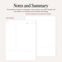 Introducing the Student Digital Notebook Bundle with 3 different color themed notebooks, 41 templates (each with and without headers for seamless note-taking) and 16 subject sections—perfect for customizing to your academic or personal needs. Note templates include lined, grid, dot grid, blank, Cornell notes, two-column, three-column, and more. It also features functional student inserts like a To-Do List, Weekly Tracker, Progress Tracker, Study Schedule, Mind Map, Chapter Summary, and Daily Tasks to support your digital planning.